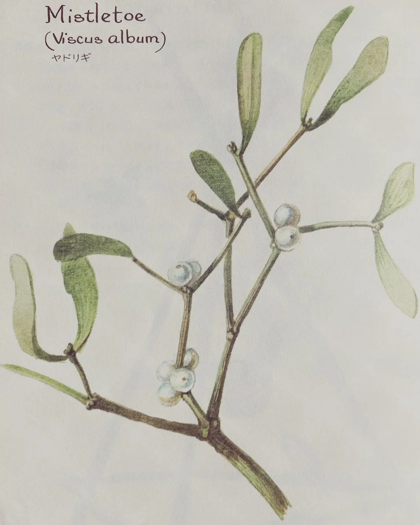 イーディス・ホールデン『カントリー・ダイアリー(The Country Diary of An Edwardian Lady)』は、20世紀初めの英国において描かれた自然観察日記。この「ヤドリギ」の絵もその一葉。