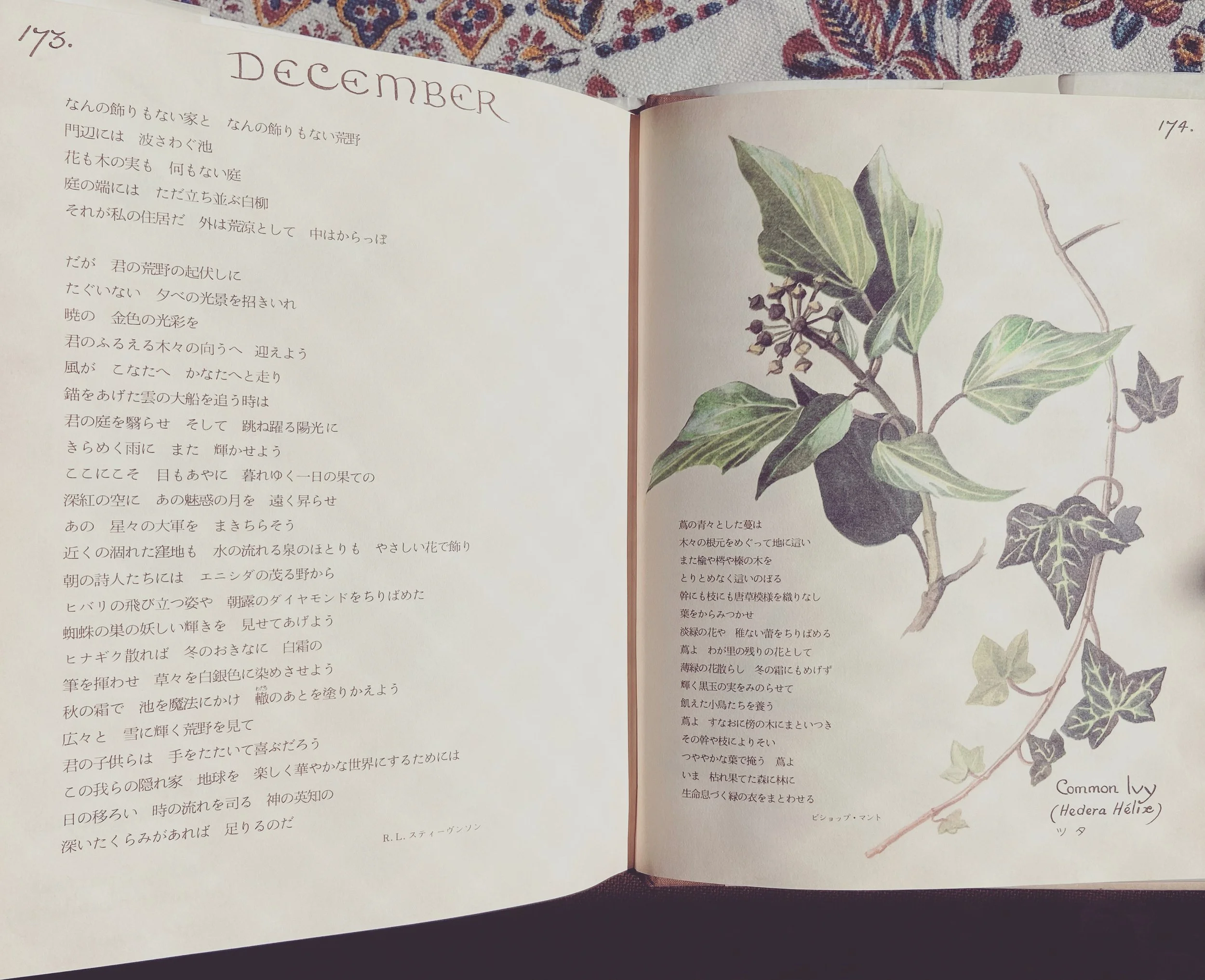 この日記は、1月から12月までのひと月ごとに、草花や鳥たちを描いた清新な色あいの水彩画、日記文、バイロンからスティーヴンソンらによる、彼女が選んだ幾篇かの詩をまとめていたもので、冒頭の「ヤドリギ」の絵も、そのうちの一葉。そう、『カントリー・ダイアリー』もまた、大切に仕舞われていた絵日記のページを、そうっとめくらせてもらうというような書物なのです。